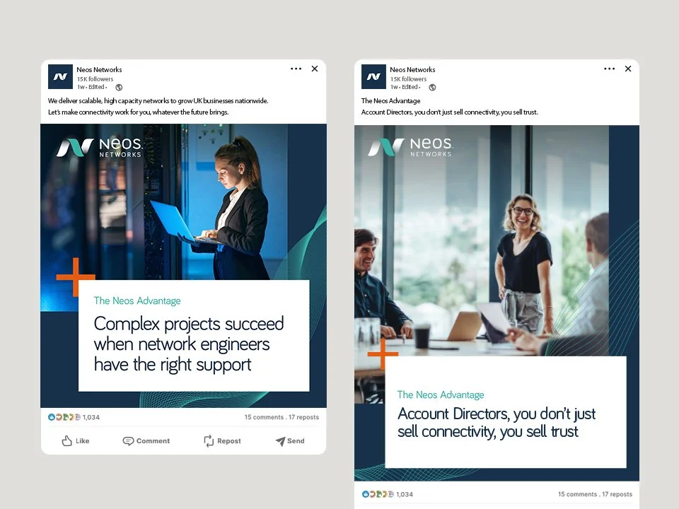 The result is a sharper, more connected identity that gives Neos Networks the tools to express who they are and where they’re heading – with templates, campaigns, and a new website on the way.